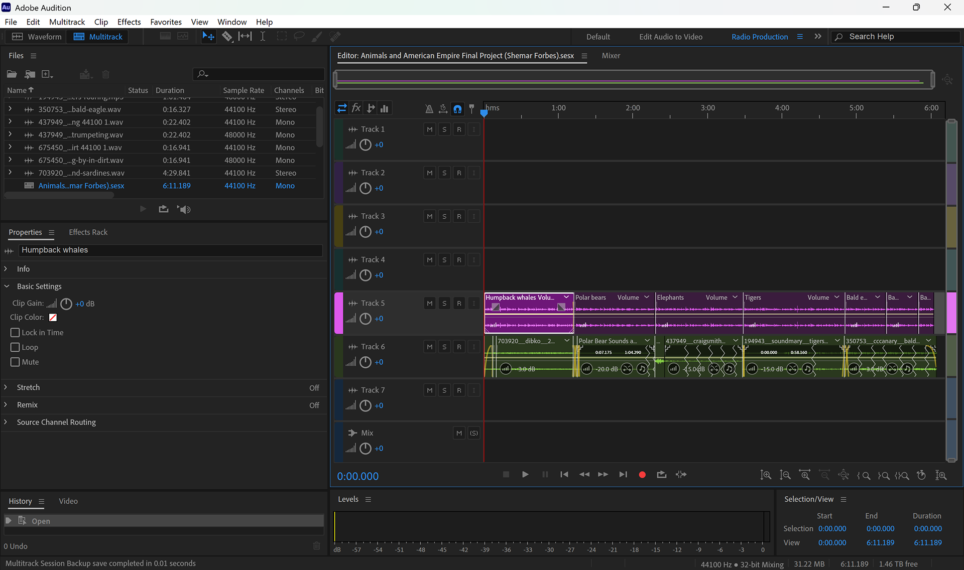 Audio soundscape exploring animal voices through layered sound design and narration.